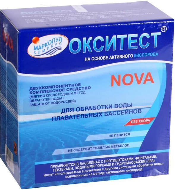 Окситест Нова двухкомпонентный препарат для борьбы против микробов, вирусов и бактерий. Справляется с болезнетворными микроорганизмами, освежает и смягчает воду. В составе 2 компонента: